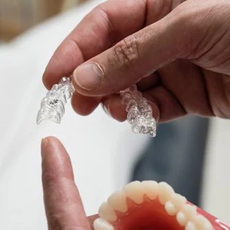 Invisalign braces straighten your teeth without traditional metal braces. You get a series of clear, custom-made and removable aligners that gradually straighten your teeth as you wear them. Each aligner moves your teeth a little bit at a time. The aligners are practically invisible and also removable. You can take them out to eat and drink and clean your teeth.
